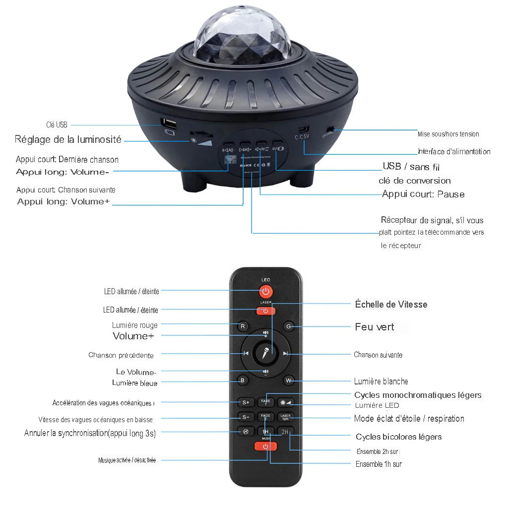 Ce projecteur 2 en 1 combine étoiles scintillantes et vagues océaniques dynamiques pour créer une atmosphère apaisante, romantique ou festive selon vos envies.